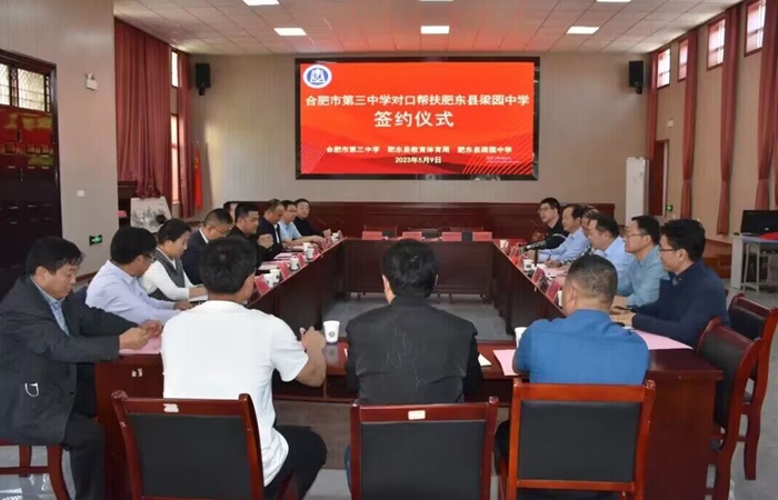 2023年5月9日下午,合肥市第三中学与肥东县梁园中学举行结对帮扶签约仪式,缔结友好合作关系。肥东县教体局领导以及两所学校的领导班子等20余人参加签约仪式,仪式由梁园中学党支部书记音邦明主持,点点手机版下载官网app、肥东县教育体育局、梁园中学三方签订了对口帮扶协议,为精准帮扶搭建起坚实的平台。