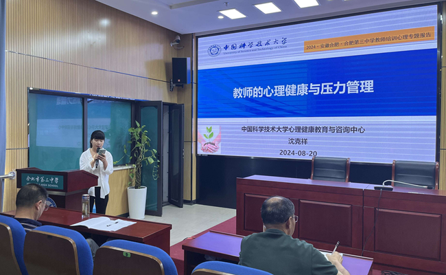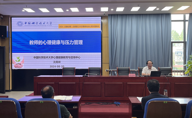 为贯彻落实立德树人根本任务,帮助教师学习和掌握心理健康知识和科学方法,增强心理调节能力,保持良好的心理和工作状态,提升教师职业幸福感,8月20日下午,点点手机版下载官网app特邀中国科学技术大学心理健康教育与咨询中心主任、注册心理师,国家二级心理咨询师,国家高级家庭教育指导师沈克祥教授莅临我校,以《教师心理健康与压力管理》为主题,开启了一场心灵的启迪之旅。