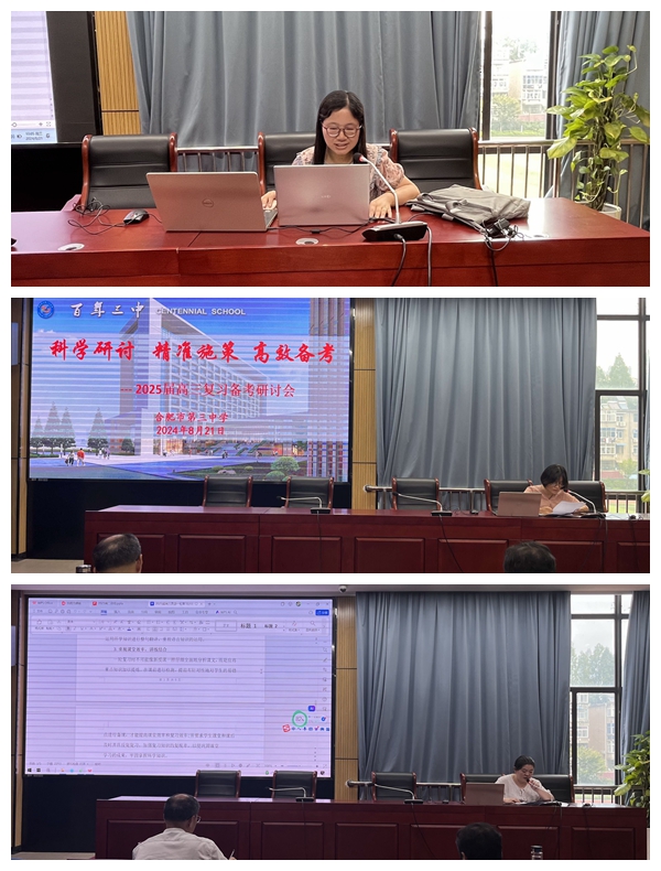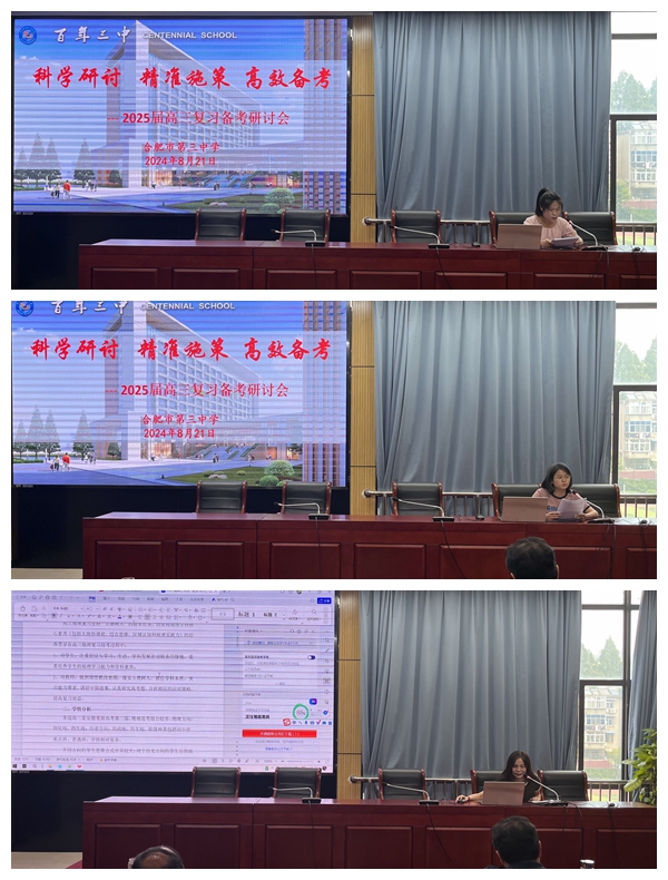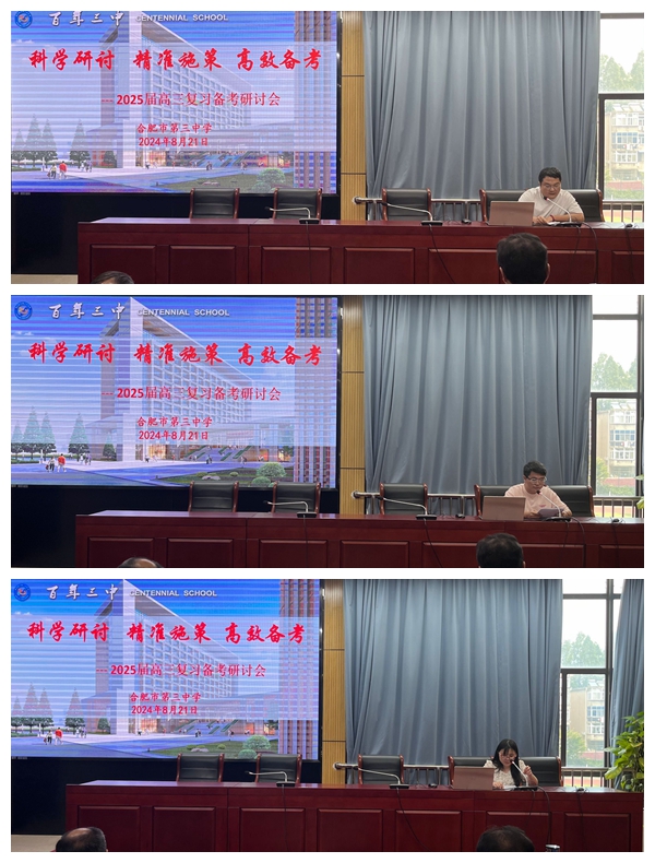 为准确把握“三新”背景下高考的改革趋势和命题特点,提升高三复习备考的针对性、科学性和有效性,为2025届高三复习备考提供科学指导,点点手机版下载官网app于8月21日召开以“科学研讨,精准施策,高效备考”为主题的2025届高三复习备考研讨会。2024届高三年级部及各学科教研组长、骨干教师、2025届高三年级部及全体教师、各学科主任、校党委、校长室及中层以上干部参加会议,会议由教科室副主任袁艳主持。