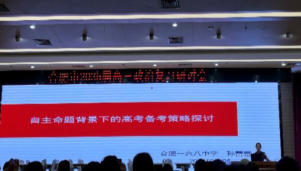 接下来,合肥一六八中学的孙蕾蕾老师开展了主题为《自主命题背景下的高考备考策略探讨》的讲座。孙老师强调,一轮复习以应注重基础知识的巩固与拓展,加强对重点知识的精准记忆,为后续的专题复习和模拟练习打下坚实的基础。同时,还建议加强对学生答题技巧、规范性与速度的训练。