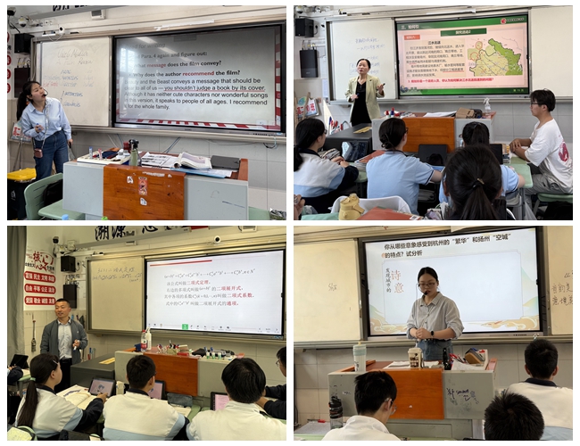 随后开展校际“同课异构”教学公开课。来自语文、数学、英语、物理、化学、生物、政治、历史、地理、音乐等十门学科的教师,围绕同一课题,凭借各自独特的教学风格、新颖的教学设计和扎实的教学功底,展现出不同的课堂魅力。在同一教学内容下,教师们采用多样化的教学方法,节节有亮点,堂堂显匠心,相同的知识在不同的教学演绎下,绽放出多样光芒,真正实现“同中求异,异中求同”的教学探索,让观摩师生沉浸其中,收获满满。