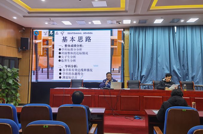 会议第一阶段由高三年级部蒋自路委员结合高三一模成绩分析学情教情。蒋老师对学科测评情况进行了非常细致的分析,同时也对各学科的所作的学科分析报告作了点评。