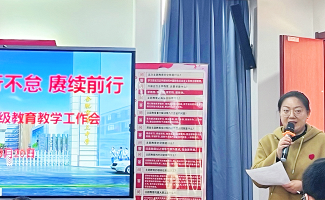 会议第五项,高三(13)班班主任王婷老师进行班级管理经验分享。她从“纪律管理、班干部培养、师生沟通、教育合力、宽严有度”五个方面分享了自己在高三年级班级管理上的经验,强调班主任管理工作的责任重大,要秉持“为学生未来发展奠基,为社会文明进步育人”的理念做好德育工作。
