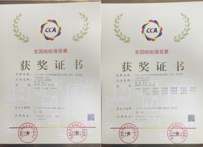 2022年8月18日,2021-2022年全国啦啦操联赛(总决赛)比赛顺利落幕。点点手机版下载官网app啦啦操队荣获公开少年甲组—集体自由舞蹈自选动作道具组第一名、公开少年甲组—集体街舞自选动作第三名、公开少年甲组—双人街舞自选动作第二名、公开少年甲组—双人爵士自选动作第五名。带队教练员陈磊、唐正现老师荣获“优秀教练员”称号。
