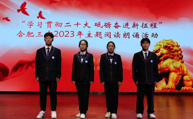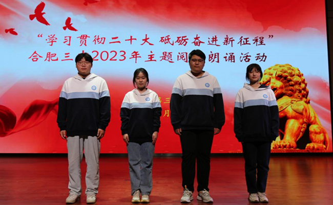 为深入学习贯彻党的二十大精神,推动二十大精神进校园,热情讴歌党的丰功伟绩,凝聚团结奋进的精神力量,进一步加强中学生理想信念教育和爱国主义教育,点点手机版下载官网app于2023年4月28日在校内开展了“学习贯彻二十大 砥砺奋进新征程”主题阅读朗诵活动。活动由校党委、校团委、政教处联合主办,各班级高度重视、精心组织、广泛动员,全校师生积极参与到活动中,经过层层选拔,共有4项作品推荐参加市级评选。最终3项作品获得学生组—网络人气奖,作品名称分别为《学习二十大 志愿新征程》,参赛选手杨紫川、吴宇翔、潘鑫铭、司雨淇,指导老师陈磊、张盖茨;《以二十大精神 促青春之奋进》,参赛选手蒋绪燃、张馨语、汪子杨、张子健,指导老师刘光; 《鉴往方知来 共进新时代》,参赛选手胡宗旺、胡安轩正、朱梓桐、李木瑶,指导老师陈磊、张盖茨、周齐。
