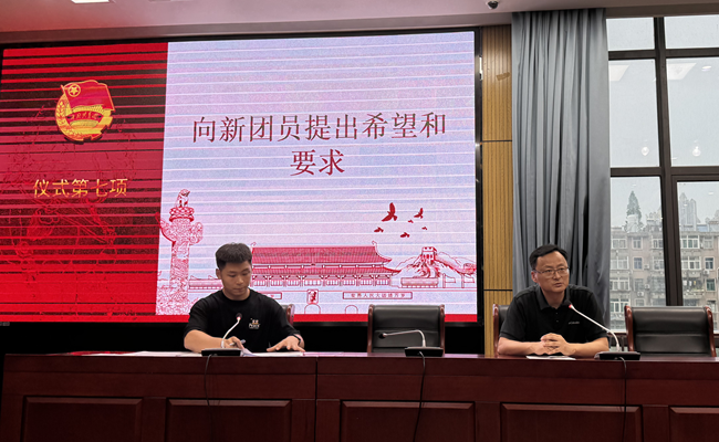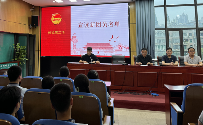 仪式在庄严的国歌声中拉开帷幕,全体参会成员高唱国歌。陈磊宣读《2023-2024学年新发展团员名单》,本次团员发展工作按照“公开、公平、公正”原则,严格规范团员发展标准与程序,经学生本人书面申请,各团支部大会评议、表决推选入团积极分子,经参加团课考核合格,结合个人志愿服务等综合表现,最终确定新发展团员名单。