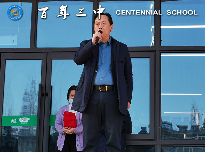 毛晓斌校长做总结讲话,希望同学们做文明和谐、健康快乐、规范有序的三中学子;做有理想、有追求、有创新、有竞争的比学赶超型三中学子!希望每位同学都能成为德、智、体、美、劳全面发展的社会主义建设者和接班人!