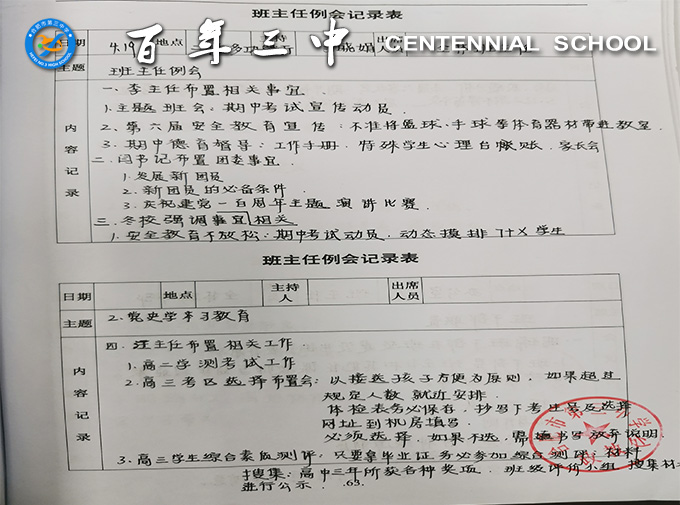 从总体情况看,大多数班主任的工作手册记录完整。班级工作进度计划周详、填写认真、内容丰富;班级学生信息详细完整;班干会教育主题明确、过程记录详尽、活动形式灵活,对学生达到了较好的育人效果。