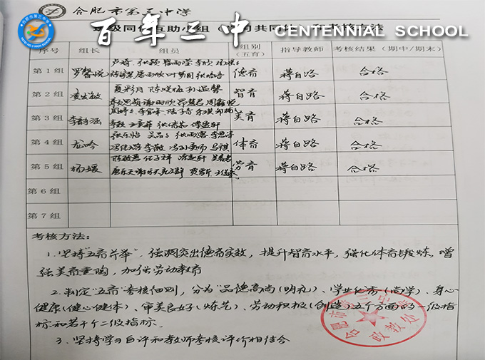 学生依据自己的兴趣爱好,以自愿原则组建学习共同体,在德育导师的指导下开展“五育”社会实践活动。班主任根据班级学生的特点和实际情况进行考核,以学生自评及教师考核相结合的方式对活动的实际效果给予评价。通过五育共同体的活动实践达到提升学生智育水平、强化体育锻炼、增强美育熏陶及劳动教育的育人效果。