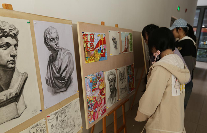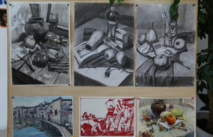 本次书画展共遴选出近百幅作品,有精准写实的素描,有色调和谐的油画,有行云流水般的书法作品,也有新颖精巧的剪纸。幅幅精品,饱含炽热之情;件件力作,尽抒奋进之志。内容与形式完美结合,笔墨与绘画相得益彰,其笔之神、画之韵,充分展示出了学生们对生活的热爱和对艺术的追求,也展现了他们的书画才情!
