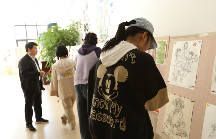 展览期间,众多学生和领导老师到场参观,并给予高度评价。前来参观的学生络绎不绝,他们在作品前驻足观赏,细心品味,脸上洋溢着幸福与快乐,不时发出内心的赞叹,学生们热情地议论着,交流着,整个校园里充满着欢乐的气息。
