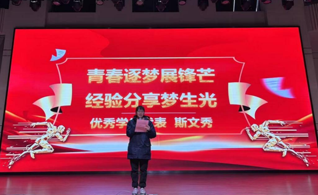 随后,优秀学生代表斯文秀分享自己的学习经验。她建议要充分利用好碎片化时间,学会梳理知识框架;定期回顾错题,总结解题思路和技巧,避免重复犯错;要保持积极乐观的心态,遇到难题或考试失利时,不要气馁。