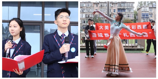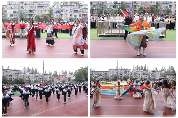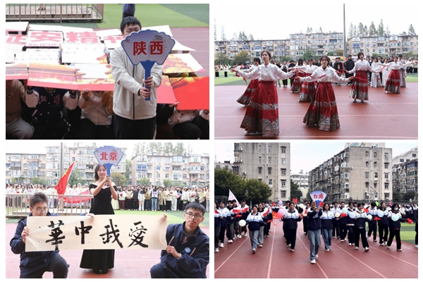 伴随着两位主持人嘹亮而富有激情的开场,入场式正式拉开帷幕。首先步入会场的是庄严的国旗方队、朝气蓬勃的鲜花队与迎风招展的彩旗队。紧随其后的,是各班级代表队带来的视觉与文化的盛宴。本届运动会入场式别出心裁,以“聚青春力量,展华夏风采”为主题,各班方阵分别代表全国34个不同省、自治区、直辖市,进行了精彩纷呈的文化展示:各具特色的民族服饰争奇斗艳,活力四射的民族舞蹈轮番上演,从壮美山河的微缩景观到延安精神的传承彰显,同学们用创意与才华生动演绎了祖国各地的风土人情和灿烂文化,赢得了现场师生的阵阵掌声与喝彩。