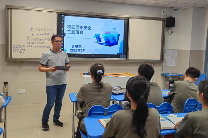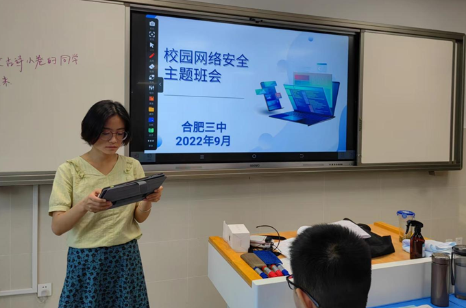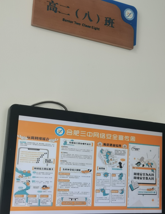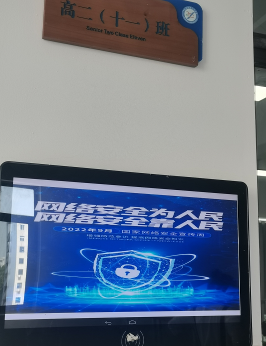 网络安全宣传教育要从小抓起,加强对青少年的网络教育,将网络安全教育纳入到学校教学内容当中,促使青少年依法上网、文明上网、安全上网。我校使用电子班牌积极宣传网络安全教育。