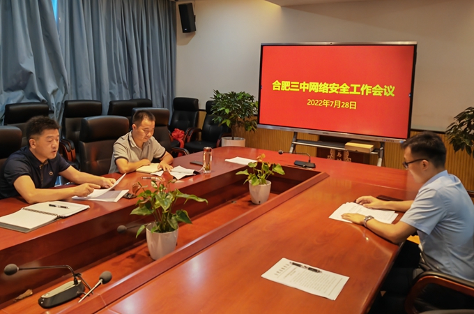 为全面加强校园网络安全保障工作的组织部署,合肥市第三中学充分认识到网络安全保障工作的重要性,不断增强“四个意识”,坚定“四个自信”,做到“两个维护”,切实提高防范化解重大风险的能力,认真落实学校党委网络安全主体责任,建立“主要负责人亲自抓、分管负责人具体抓”的领导责任制,并将网络安全工作纳入学校的重点工作。