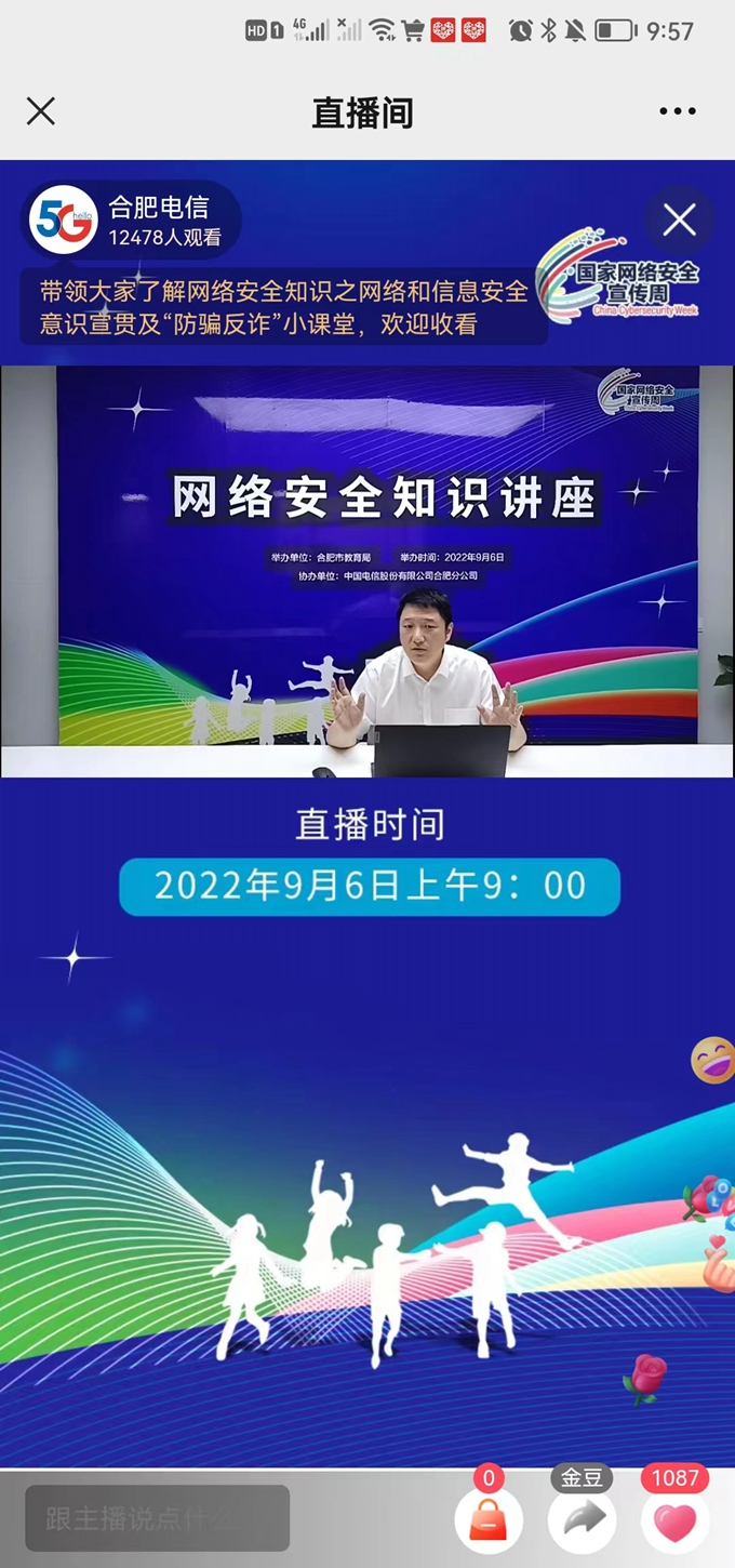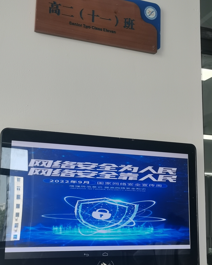 以每年的国家网络安全宣传周为例,合肥市第三中学科信处会利用各种形式,全方位、多角度开展网络安全教育系列活动,真正使网络安全工作知识入脑入心。学校制定网络安全宣传大型电子展板,每天定时在学校大屏向全校师生员工展示。同时制作专门用于网络安全宣传的标语,标语内容浅显易懂,警示意味浓厚,富有教育意义。利用电子班牌宣传网络安全网络安全宣传教育要从小抓起,加强对青少年的网络安全教育,将网络安全教育纳入到学校教学内容当中,促使广大学生依法上网、文明上网、安全上网。