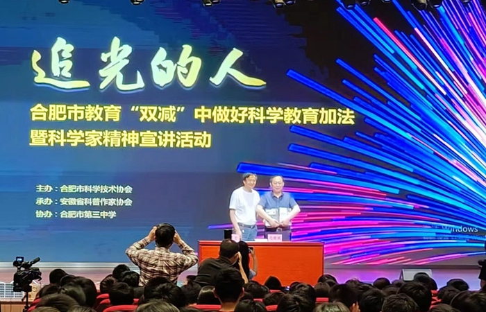追逐量子之光,用智慧照亮人生。为弘扬科学精神,传播科学思想,增长科学知识,坚定学生爱国报国之志,5月31日下午,合肥市第三中学科信处联合高一年级部在正谊会堂组织了一场科普讲座,为同学们带来一场科学知识盛宴,高一年级全体学生参加。