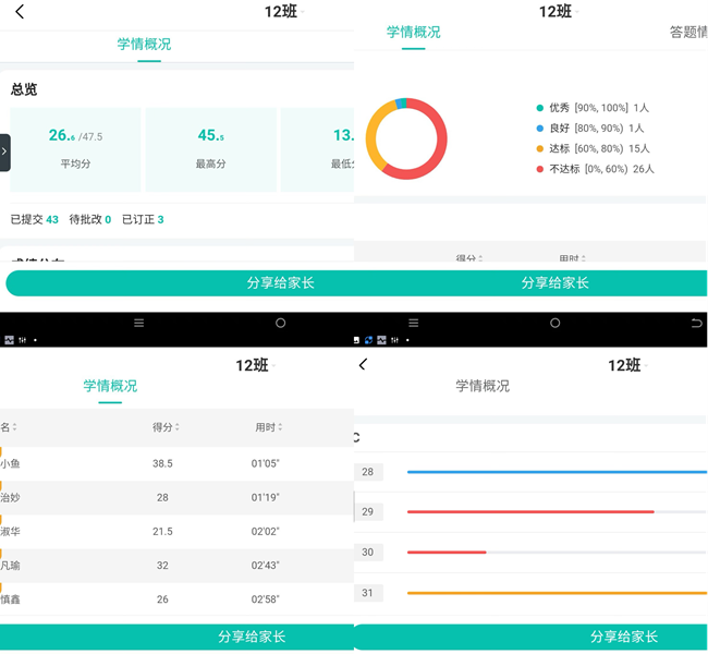 现在,学生们可以在完成测试后立即通过学生平板上传自己的答案,这使得老师能够及时获取到全班同学的具体答题情况,并据此做出精准有效的反馈与指导。这样一来,原本用于手动批改试卷的时间就被节省下来,可以更好地投入到后续的教学准备以及对学生学习情况的深入分析当中去,真正实现了减轻教师工作负担、提高课堂教学效率的目标。