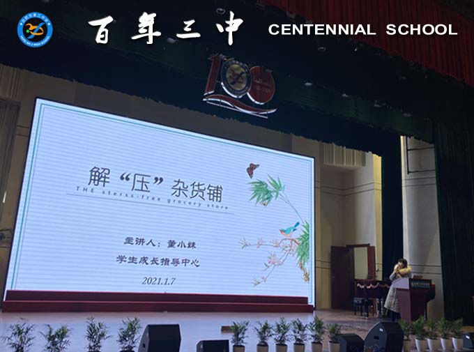 2021年1月7日下午,点点手机版下载官网app正谊会堂里笑声阵阵,学生成长指导中心董小妹老师为高一全体同学带来了一场主题为《解“压”杂货铺》的心理讲座,这也是本学期正谊大讲堂的第七场讲座,旨在缓解学生的考前压力,以积极的心态迎接期末复习。