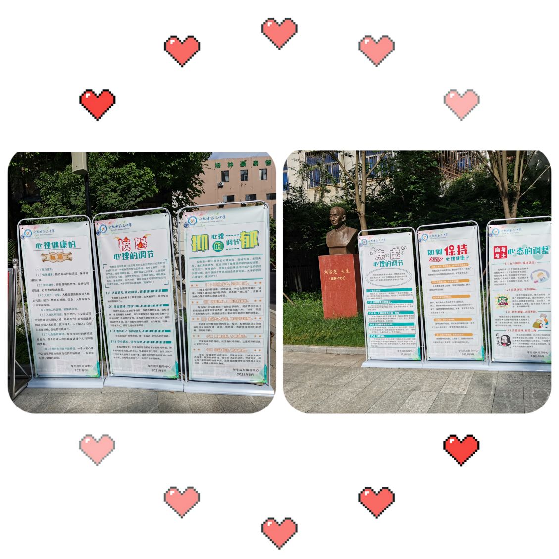 将心理健康知识以展架海报的形式,向师生普及。让师生了解、掌握基础的心理健康知识及情绪调节方法,促进师生身心健康发展。