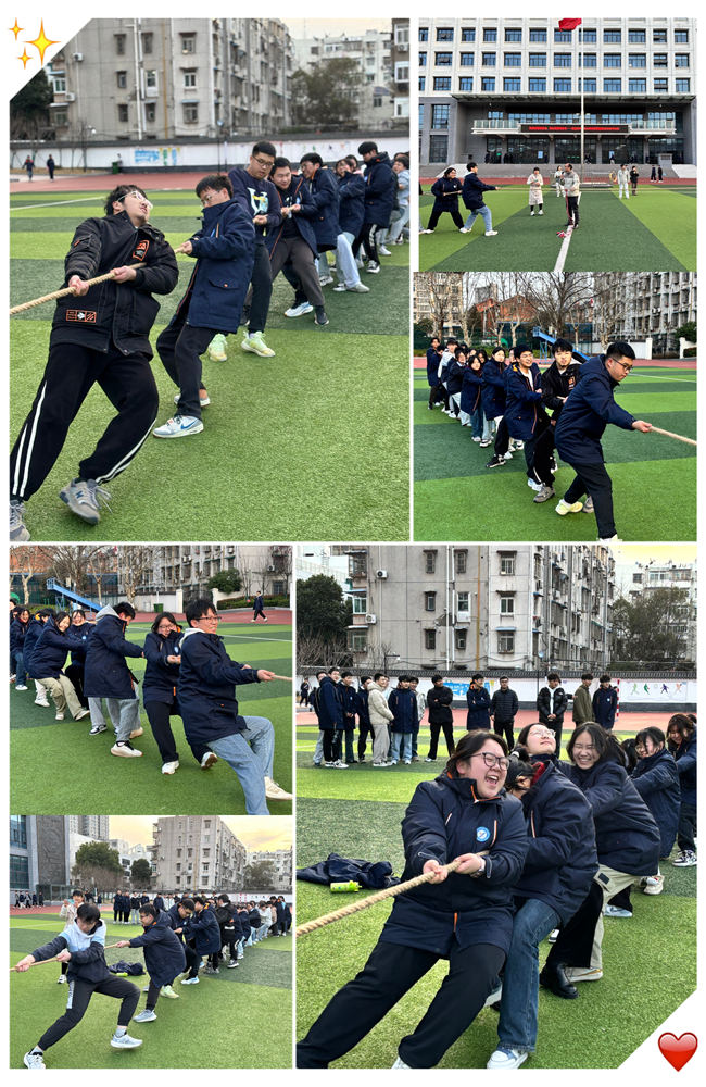 活动现场,一系列妙趣横生的游戏依次进行。同学们在肌肉放松环节中卸下了身上的疲惫与重负;在“花开花落”游戏里,感受着生命的绽放和内心的平静;在“鱼跃龙门”中,尽情释放着青春的活力与激情;在拔河比赛时,现场气氛更是热烈非凡,呐喊声、助威声此起彼伏,交织成一曲气势磅礴的团结奋进之歌。同学们的欢声笑语,让整个校园都洋溢着青春的气息。接下来,让我们一起走进活动的精彩瞬间~