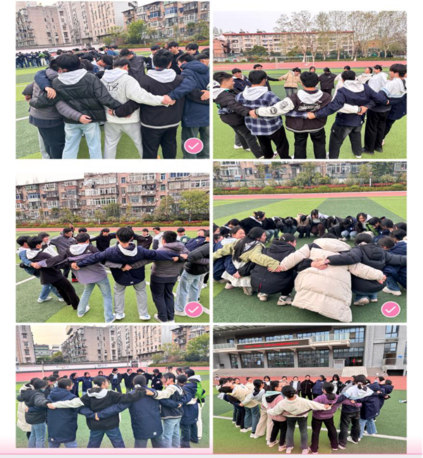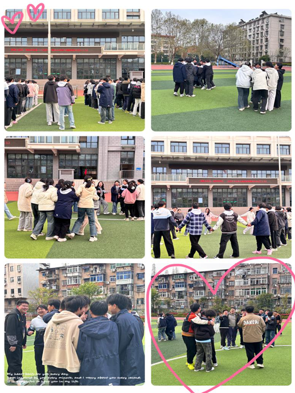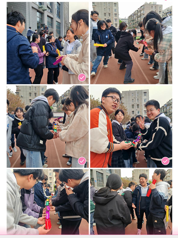 活动以趣味游戏为载体,巧妙地将团队协作、情感联结与身心放松融为一体,为学子们注入了一股温暖而强大的前行力量。同学们在“桃花朵朵开”中,打破了隔阂,拉进了距离,笑声如春潮涌动;在“花开花落”中感受着身心的放松与舒展;“口香糖”游戏则像是一根无形的纽带,将青春的身影编织成充满创意的画卷;“珠行万里”更是将活动推向了高潮,同学们相互配合、齐心协力,用PVC管道搭建起“梦想通道”,当珠子稳稳落入终点杯时,欢呼声响彻操场。