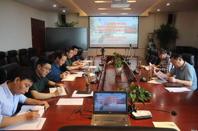 2022年5月27日上午8:30,点点手机版下载官网app党委以“立足新时代新征程 培养社会主义建设者和接班人”为主题,在校君尧楼九楼会议室召开理论学习中心组第5次专题学习。党委班子成员及各党支部书记参加,会议由党委书记马剑主持。