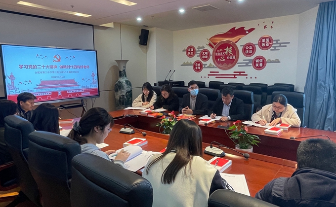 为深入学习贯彻党的二十大精神,3月6日下午,第三党支部开展了“学习二十大精神,做新时代‘四有’好老师”主题党日活动。会议由校党委委员杨庆吉主持,第三支部全体党员参加。