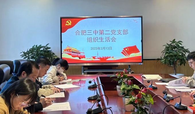 2023年3月13日下午,合肥市第二党支部在君尧楼八楼会议室召开党员大会。会议由党支部书记蒋自路主持,校党委委员陈卓亲临会议作指导,全体党员参会。