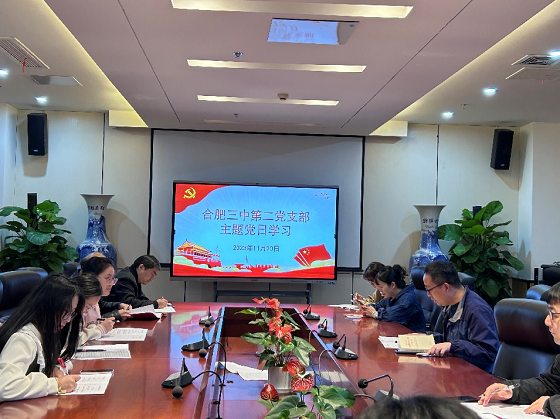 2023年11月20日下午,合肥市第三中学第二党支部在君尧楼七楼会议室召开党员大会。本次会议主要分为五项,此次会议由党支部书记蒋自路主持,全体党员参会。