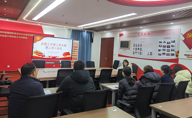 2024年2月29日下午,合肥市第三中学第二党支部在君尧楼七楼党建活动室召开党员大会。此次会议由党支部书记蒋自路主持,全体党员参会。