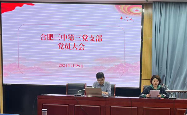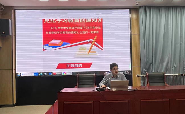 会议第一项,第三党支部宣传委员江芸同志传达学习了中央党的建设工作领导小组关于党纪学习教育会议精神,强调全体同志要提高政治站位,深刻领会党纪学习教育的重大意义,把开展党纪学习教育同落实党中央重大决策部署和完成本单位重点工作紧密联系起来,使党纪学习教育每项措施都成为促进学校工作的有效举措。