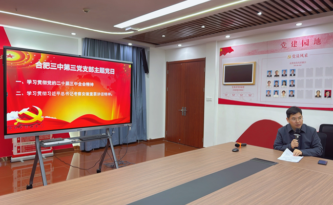 活动第一项,支部书记郑书建带领党员们深入学习党的二十届三中全会精神。郑书建首先强调了此次全会对于全面深化改革等方面的重大意义,然后对全会中的各项要点进行了详细解读,使党员们深刻领会到全会精神的核心要义与丰富内涵,引导党员们在教育教学工作中,积极践行全会精神,为推动学校教育事业的高质量发展贡献力量。