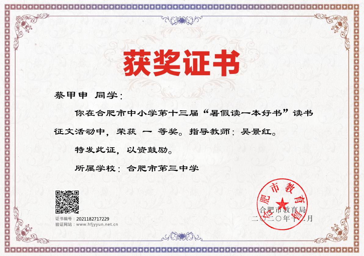 合肥市中小学“暑假读一本好书”读书征文活动是由合肥市教育局主办的阅读品牌活动,每年暑期举行一次,已经连续举办了13届,深受广大师生欢迎。旨在贯彻落实立德树人教育目标,营造书香校园文化氛围,促进学生全面发展。