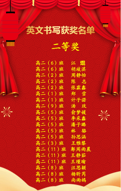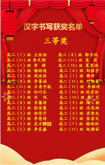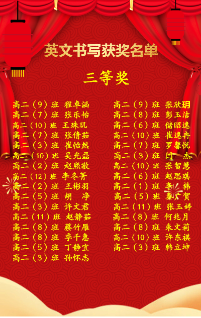 为进一步落实中共中央办公厅国务院办公厅《关于全面加强和改进新时代学校美育工作的意见》,规范学生书写,培养良好书写习惯,丰富学生学习生活,促进学生全面发展,高二年级近期举行了汉字、英文书写比赛活动。