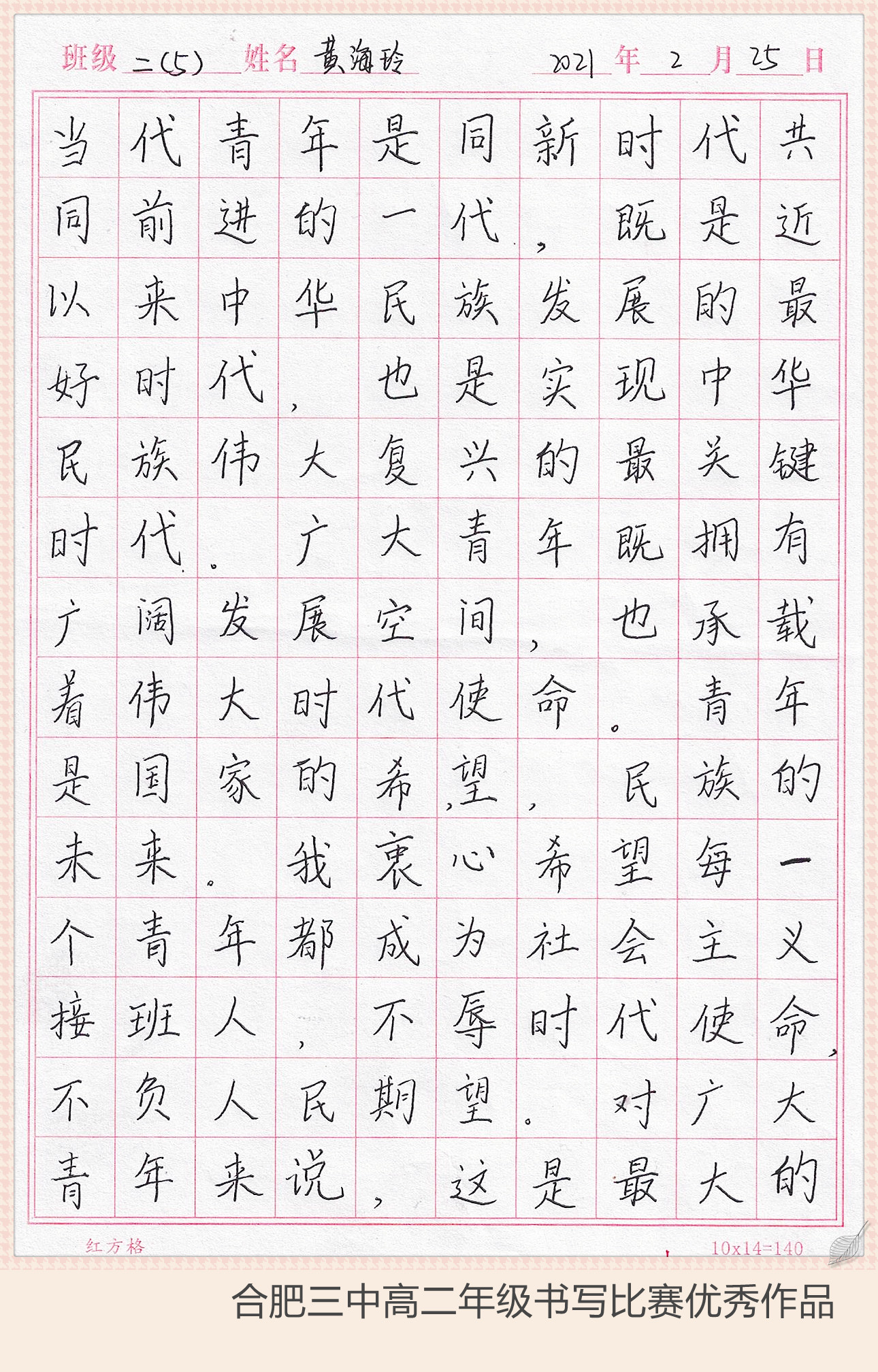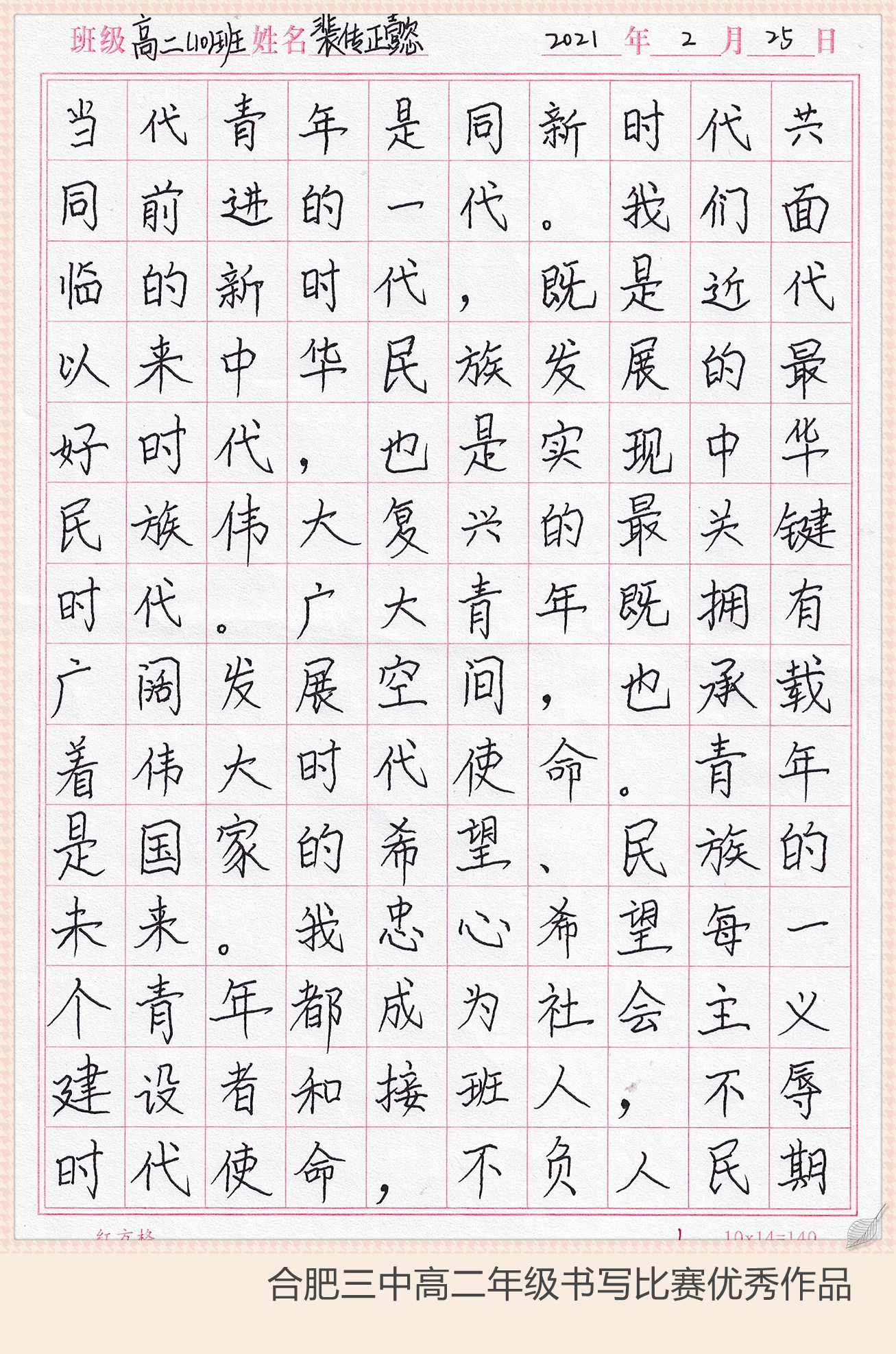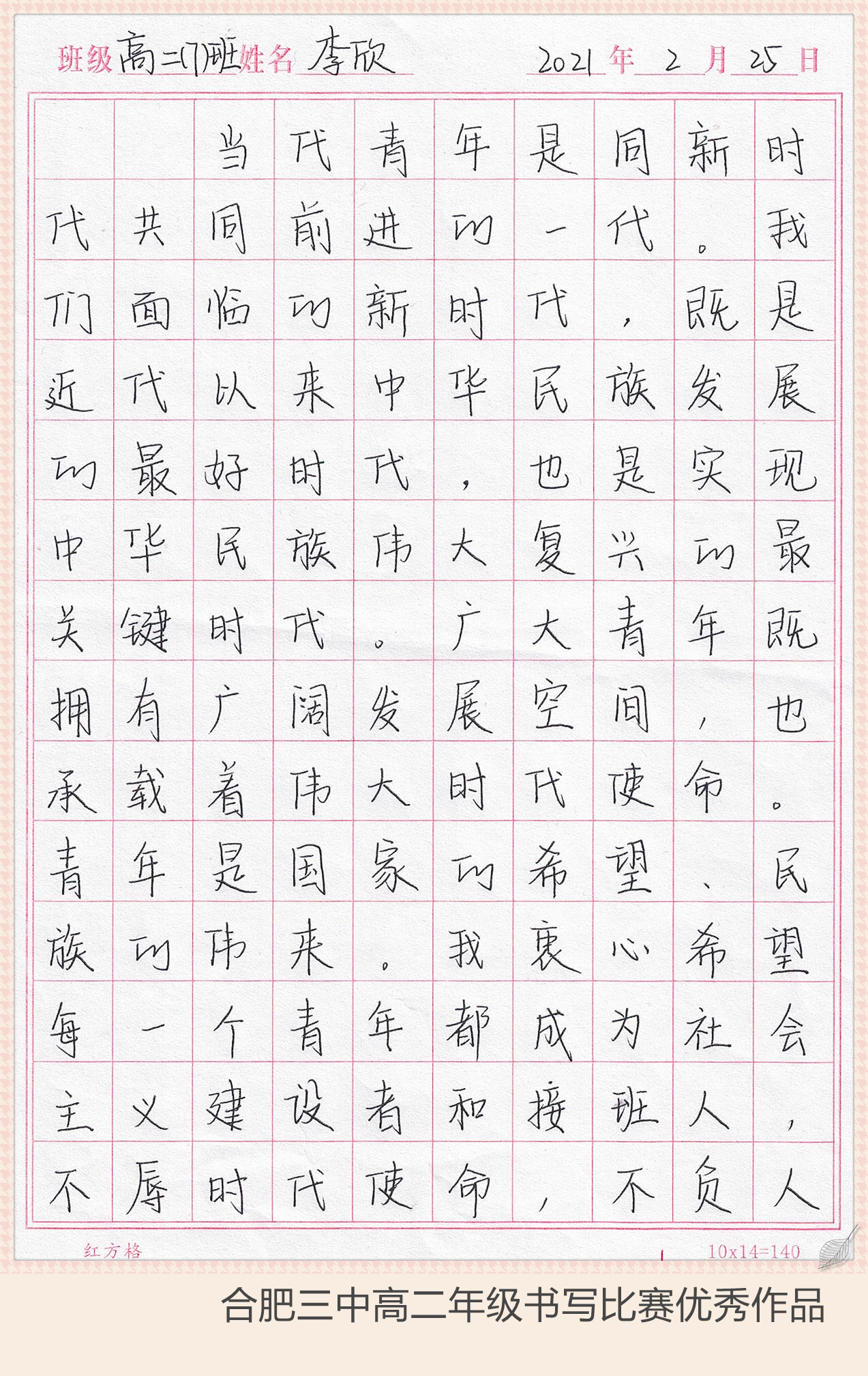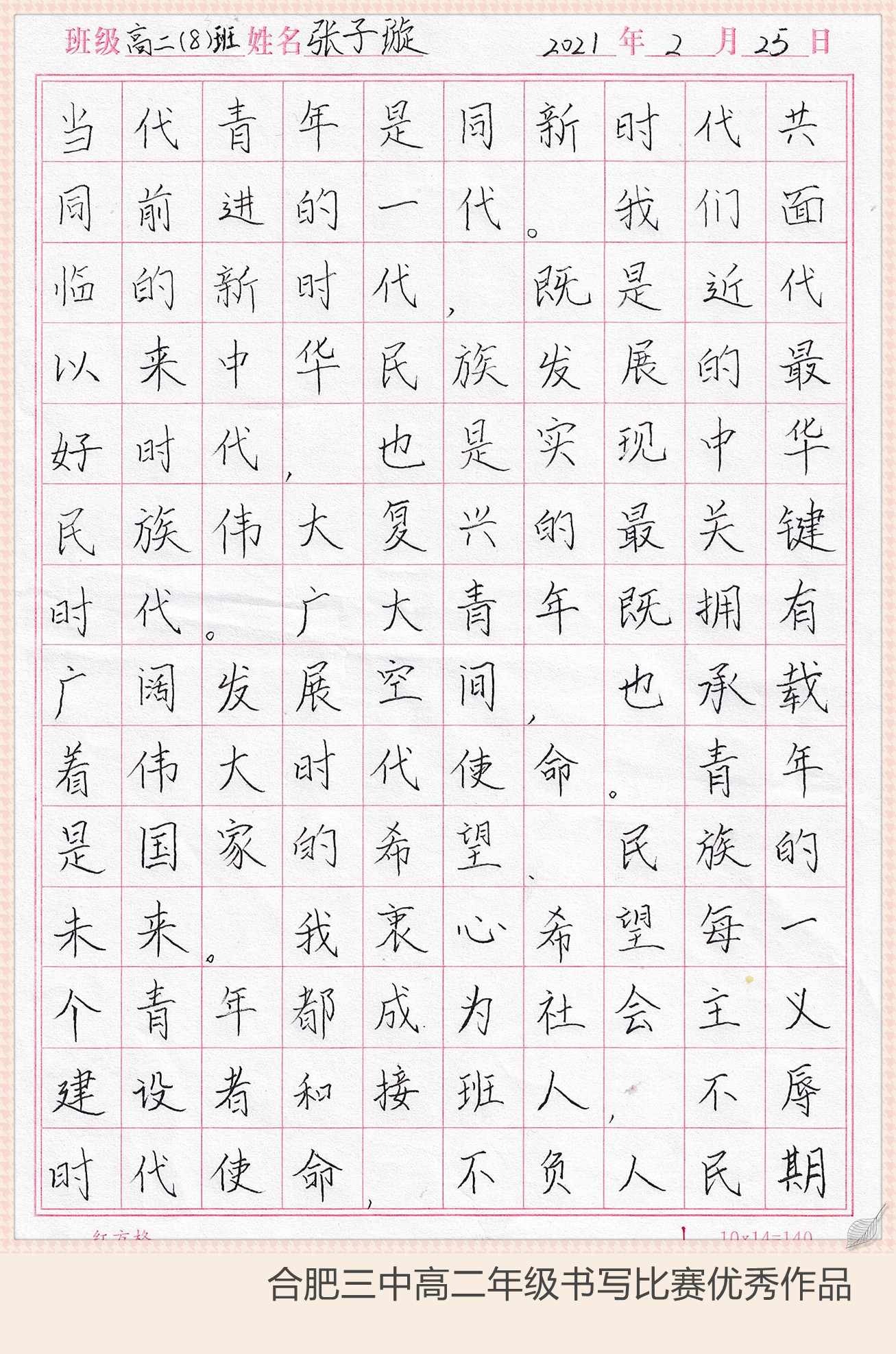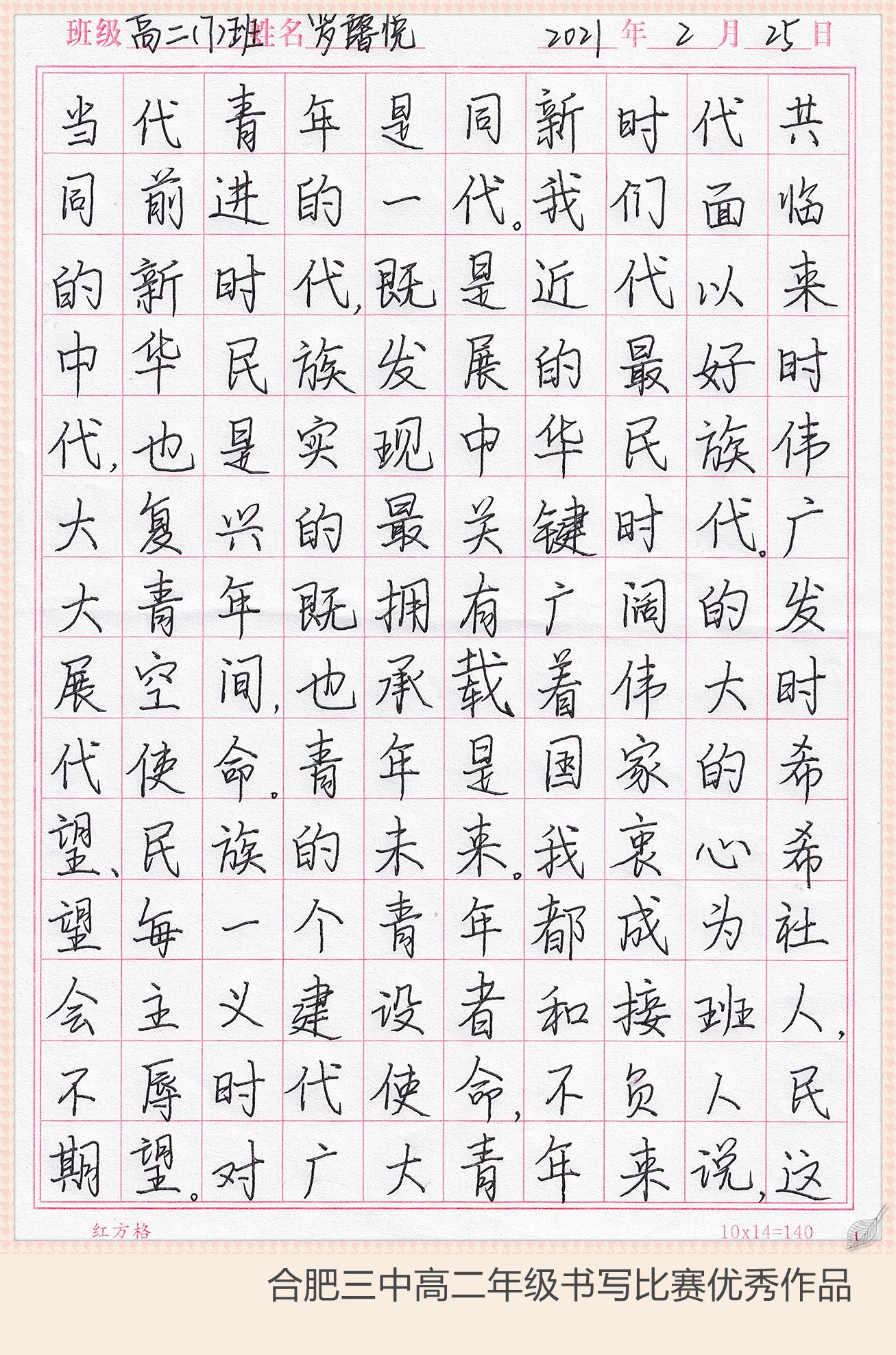 下面让我们继续欣赏大合三优秀的书写作品吧……