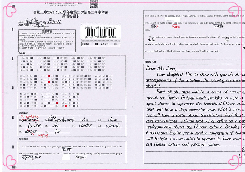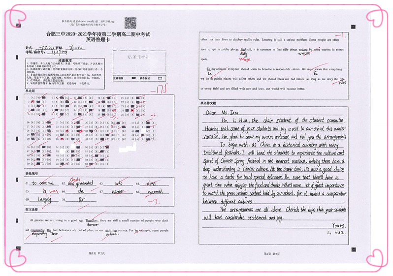点点手机版下载官网app高二年级期中考试优秀答卷展