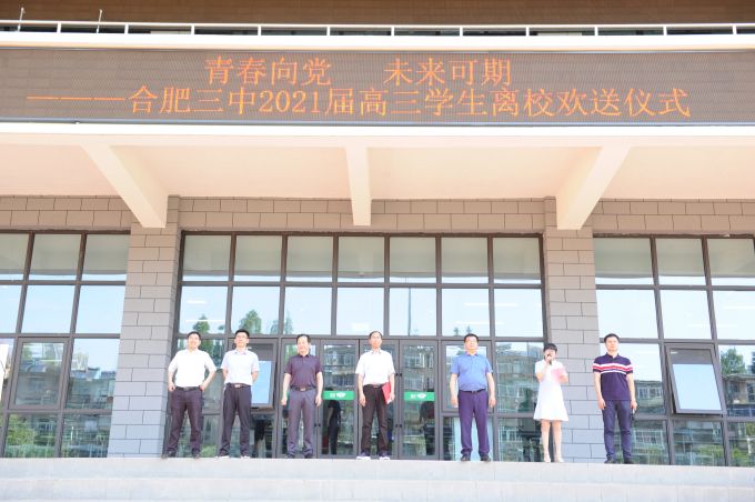 晴空艳阳日,学子离校时!校党委书记马剑代表全校教职员工深情致辞。三年的时光,一千多个日日夜夜,你们在最美好的青春年华和三中相遇。三年来,母校见证了你们的青春与梦想,见证了你们的努力与成功。三中的君尧广场、正谊会堂、林荫小道、绿茵场地,也因此而融入你们生命成长的年轮。母校必将是你们生命的底色,你们必将是母校历史的珍藏。最后,马剑殷切寄语同学们:今天的壮行,不是“结束”,是欢呼开始;不是“纪念”完成,而是宣誓新的征程。祝愿你们“青春向党,未来可期;高考顺利,前程似锦”!