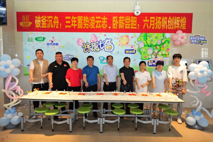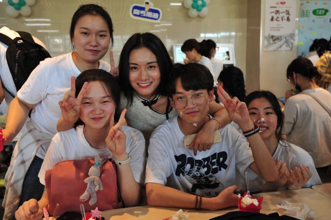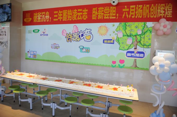 校园餐厅也非常用心给力,他们提前现场制作写有“马到成功-金榜题名”的超长型大蛋糕,还有水果、糕点、气球、许愿墙。校领导、老师与毕业生分切蛋糕,许下心愿,一块块甜蜜的蛋糕让同学们大快朵颐,也更深刻的感受着校园的美好。