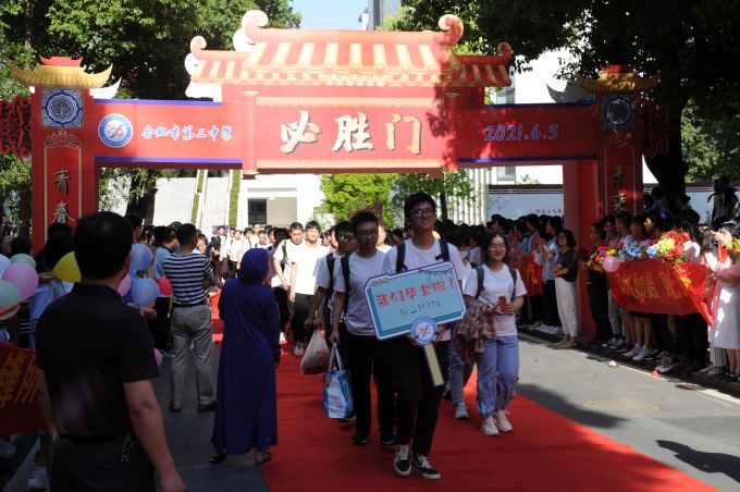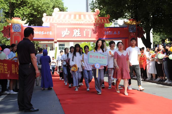 高考是一场考验,更是一次成长。为了目标,为了梦想,三中学子迈着坚定的步伐,离开校园,走向新的征途!惟愿三中学子乘风破浪,直挂云帆,鱼跃龙门,一举夺魁!