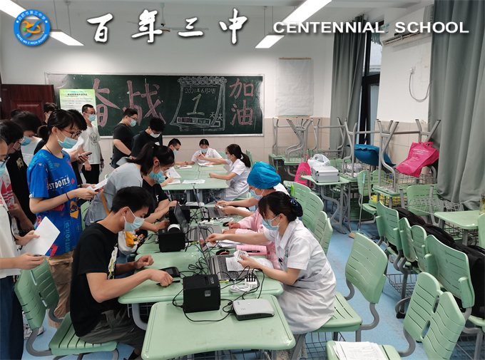 点点手机版下载官网app有条不紊地推进疫苗接种工作。接种前在校长室的统一领导下学校教务处、保卫科、后勤等部门专门开了疫苗接种推进会。学校提前做好疫苗接种方案以及配合双岗街道卫生服务中心布置好疫苗接种现场。接种现场一共设有候诊室、问询登记室、接种室、留观室、特殊情况处置室等,各个教室都有标志性引导,为学生疫苗接种提供便利和优质的服务。接种期间三中校园秩序井然,双岗街道卫生服务中心的负责人梁化亮主任夸赞说三中学生素质高,纪律性强,能积极配合医护人员做好各环节工作。