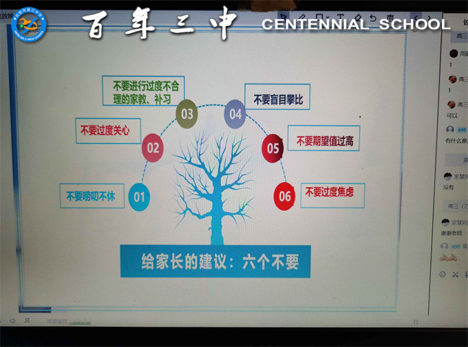 会前,年级部召集全体班主任对家长会内容进行了精心的打磨。各班班主任针对本班级学生特点准备了详实的材料并针对家长会做了精心的安排。会上,各位班主任着重强调学生在高三的生理以及心理特点,帮助家长掌握如何应对学生心态的变化与情绪的起伏方法。介绍班级现阶段的基本情况,指明了班级现阶段存在的问题,指出学生学习过程中遇到的困难,提出高三提高成绩的计划措施,介绍我校应对高三年级有特色的活动和举措。最后,班主任提出对高三的目标与愿望,为家长和学生加油打气,树立信心。隔屏不隔爱。本次家长会有效的减轻了家长和学生进入高三之前的迷茫和紧张情绪。家长们也获得了许多先进有效的的家庭教育方法,对如何尊重和关爱孩子,如何高质量的陪伴孩子,得到了启发。家长们也对学校管理、老师、工作等方面献言献策,共商育人大计。