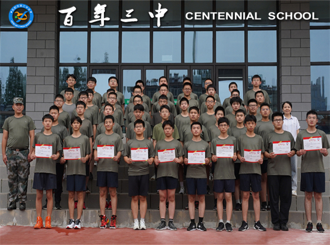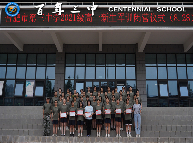 高一级部主任郑书建宣读了“优秀学员”名单,校领导为获奖的同学们颁发荣誉证书,鼓励优胜者再接再厉。逍遥津街道武装部李相才教官代表全体教官人员祝老师们在新的工作生活中万事如意,同学们在新的学习生活中健康进步,祝合肥市第三中学越办越好,再创佳绩!