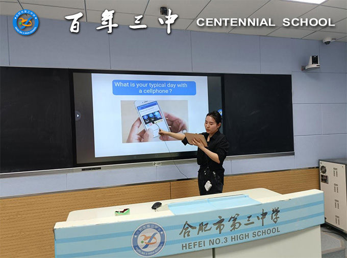 紧随其后上场的是英语组的张嘉柔老师,她为大家带来的信息技术应用课为《so close ,yet so far》,讲述的是处于网络时代之下,社交网络对于当代青少年的人际交往的影响,触发学生对网络时代友情,亲情的思考,教会学生学习权衡互联网使用的利弊,树立正确的价值观。课堂上,张老师首先使用数据的可视化分析,让同学们直观的感受如今网络对人们生活,学习的影响;熟练的ppt操作和智慧课堂的运用,帮助同学们实现畅所欲言,激发了批判性思维的产生,整个课堂气氛活跃又知识量满满。