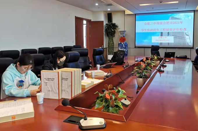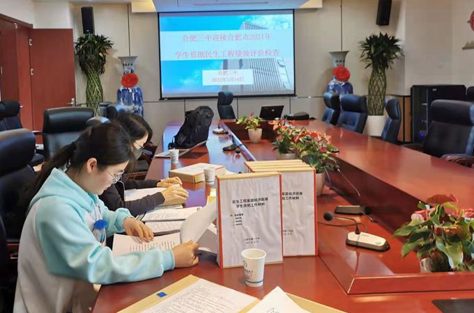 市绩效评价小组按照《合肥市中职和普通高中家庭经济困难学生资助民生工程绩效评价指标表》标准,从组织保障、资金落实、项目管理、财务管理、项目产出和项目效益6个方面对三中2021年度资助工作进行了全面的核查赋分,并着重对学生的个人资助档案进行了细致审核。