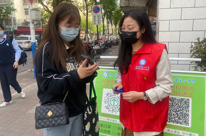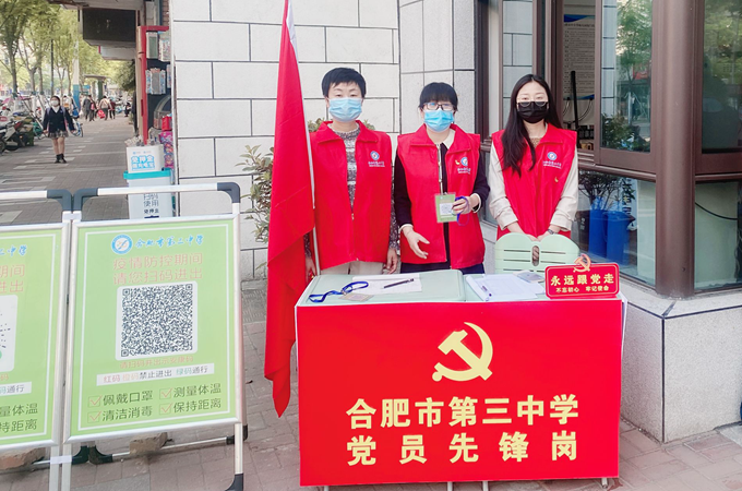 党旗飘扬暖人心。学校各党支部积极响应党委疫情防控号召,全体党员在多个岗位上充分发挥先锋模范作用。设立“党员先锋岗”,负责学校值班,每天早、中、晚三个时间段认真督查进出校园的人员扫“两码”、测体温、戴口罩等情况,严守校园防疫第一关;成立“志愿者服务队”,深入核酸采样一线,与疾控中心密切配合,协助开展信息采集、登记指引、秩序维护和宣传保障等工作,为检测工作平稳有序运转提供了坚实的保障。除此之外,担任班主任的支部党员,每天分三次对班级学生进行体温检测,核查班级学生及家长是否有异常情况;部分党员是学校一线教师和后勤人员的,积极协助年级部和各班级防疫防控,有任何异常情况立即逐级汇报。三中党员以实际行动为疫情防控注入时代正能量,彰显着责任和勇气,让党旗始终飘扬在防疫一线。