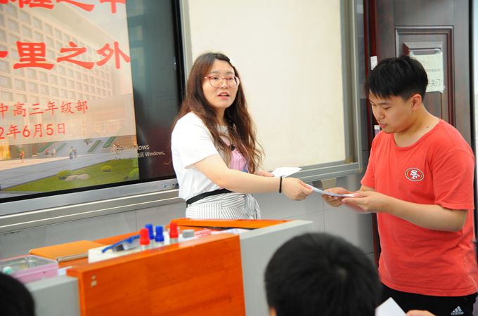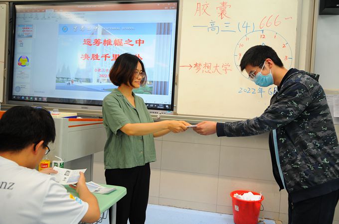 下午2点,高三学子们迎来了他们在三中的最后一节班会课。班主任老师亲手为每一位同学发放准考证,并叮嘱他们一定要妥善保管好。对于那些在考前需要注意的事项,老师也是不厌其烦地向同学们交代着。临别前的不舍与关怀,在此刻都化作提醒的话语和深情的拥抱,希望同学们能够在考前牢记,顺利完成高考。