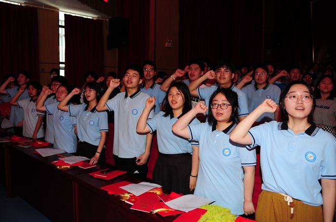 昨日垂髫,今朝成冠;十八而志,玉汝于成。在场领导为学生代表佩戴成人礼帽,并拨穗祝福,向同学们传达成人的喜悦和成才的期望。随后,现场所有高三同学,齐声宣誓,向世界宣告自己已成人长大。