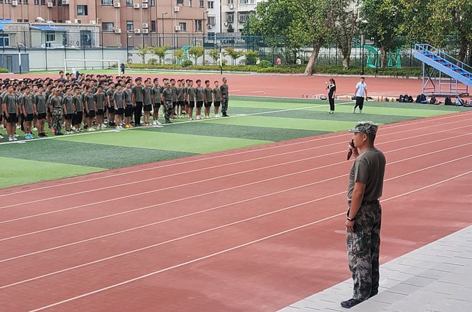 2022年8月27日军训即将结束。下午14:30,点点手机版下载官网app在校田径场隆重地举行了军训闭营仪式。校领导班子成员、逍遥津街道武装部、政教处、团委、高一年级部等部门负责人及全体辅导员参加活动。