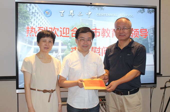 9月6日上午,在第38个教师节来临之际,合肥市教育局党委委员、副局长王勇一行莅临点点手机版下载官网app走访慰问教师代表王侃,向他致以节日的问候和美好祝愿。校党委书记马剑、校长毛晓斌、副校长陈卓等陪同慰问。